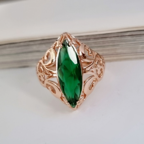 Кольцо 19 р с крупным камнем ювелирная бижутерия коллекция "Дубай" покрытие: позолота, вставка: фианит, цвет: зеленый, арт.314.512-19