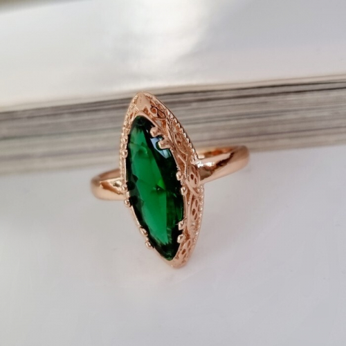Кольцо 19 р с крупным камнем ювелирная бижутерия коллекция "Дубай" покрытие: позолота, вставка: фианит, цвет: зеленый, арт.314.515-19
