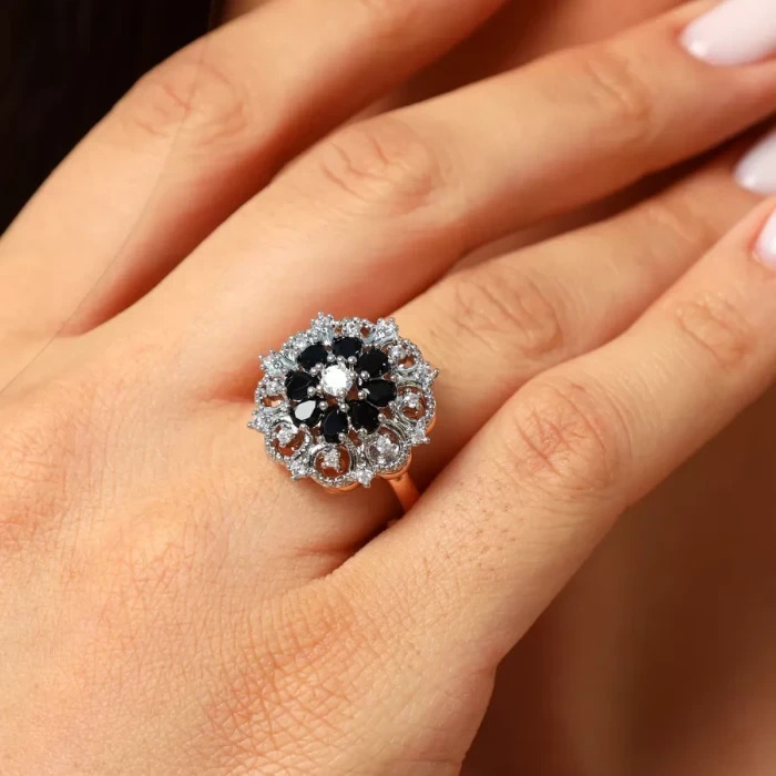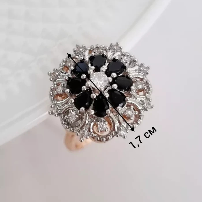 Кольцо цветок 20 р ювелирная бижутерия Дубайское золото покрытие позолота, вставка: фианиты, цвет: черный, арт.314.631-20