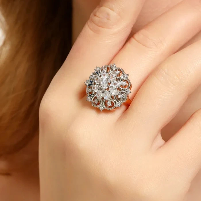Кольцо цветок 20 р ювелирная бижутерия Дубайское золото покрытие позолота, вставка: фианиты, цвет: прозрачный, арт.314.630-20