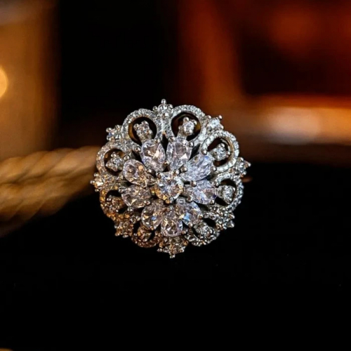 Кольцо цветок 20 р ювелирная бижутерия Дубайское золото покрытие позолота, вставка: фианиты, цвет: зеленый, арт.314.629-20