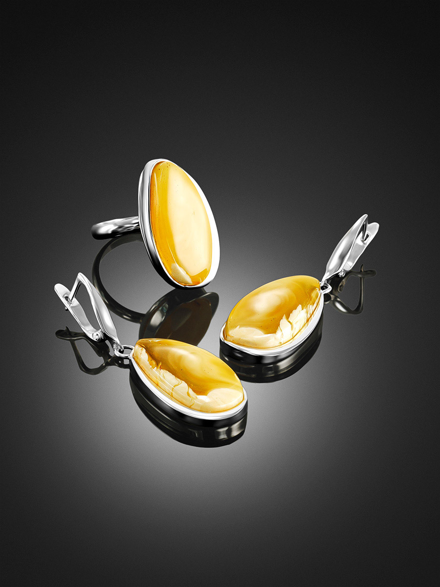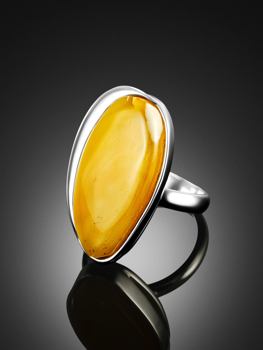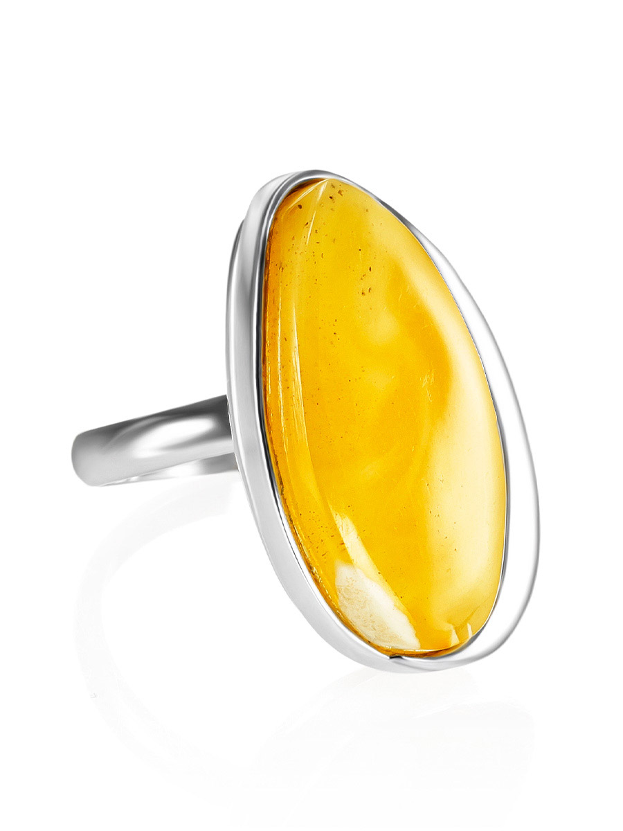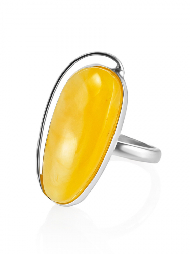 Кольцо «Лагуна», украшенное натуральным медовым янтарём