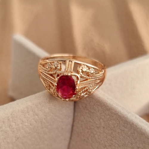 Кольцо с камнем 19 р ювелирная бижутерия Дубайское золото покрытие позолота, вставка: фианит, цвет: малиновый, арт.314.609-19