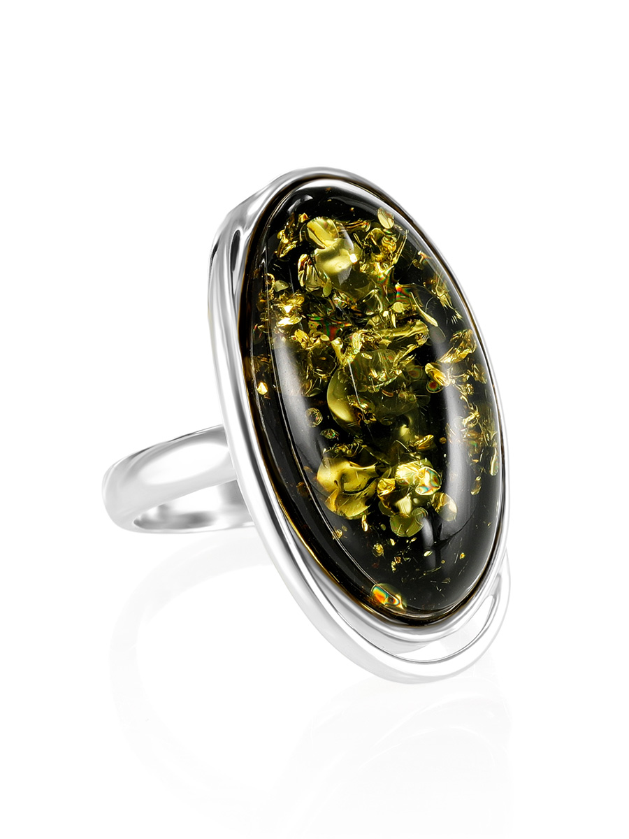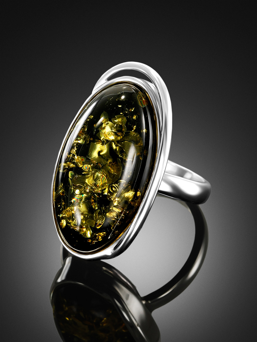 Кольцо с натуральным янтарём зелёного цвета «Медиана»