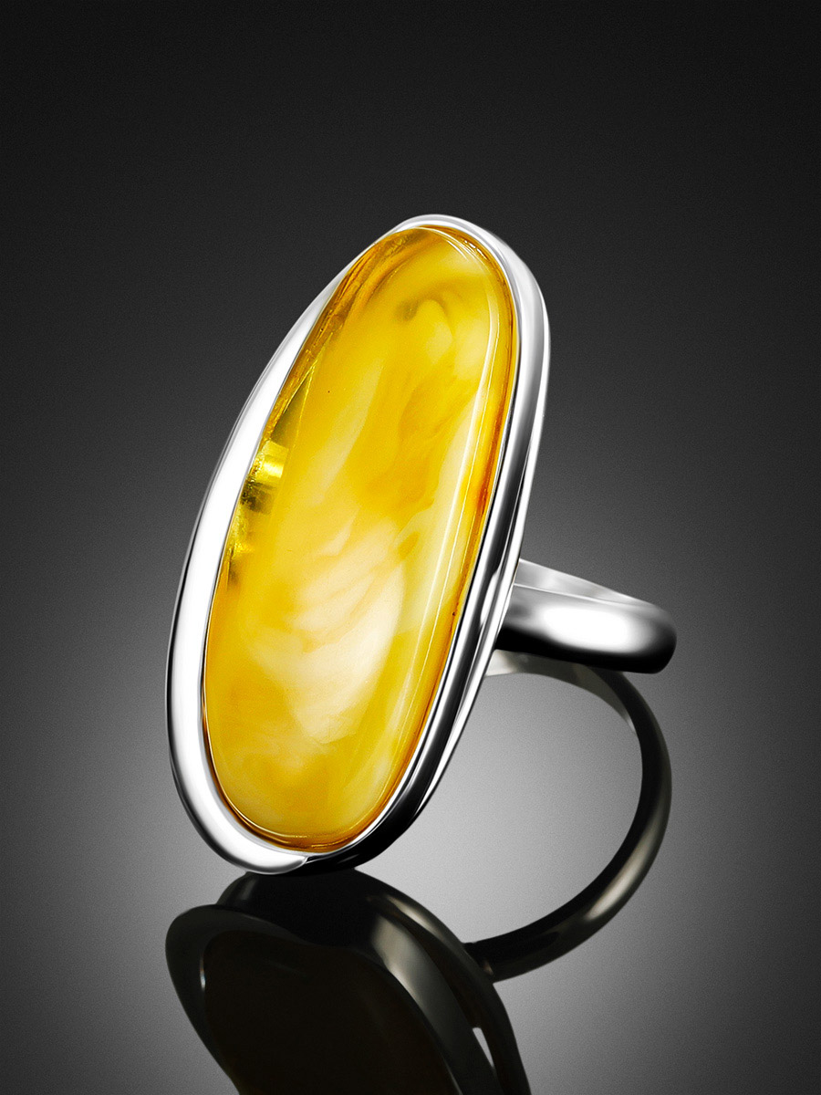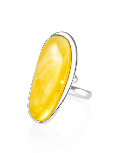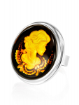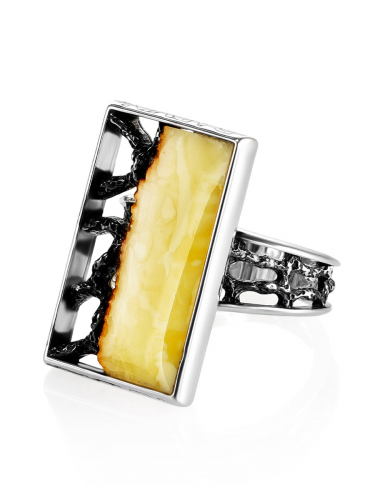 Кольцо с натуральным живописным янтарём «Лагуна»