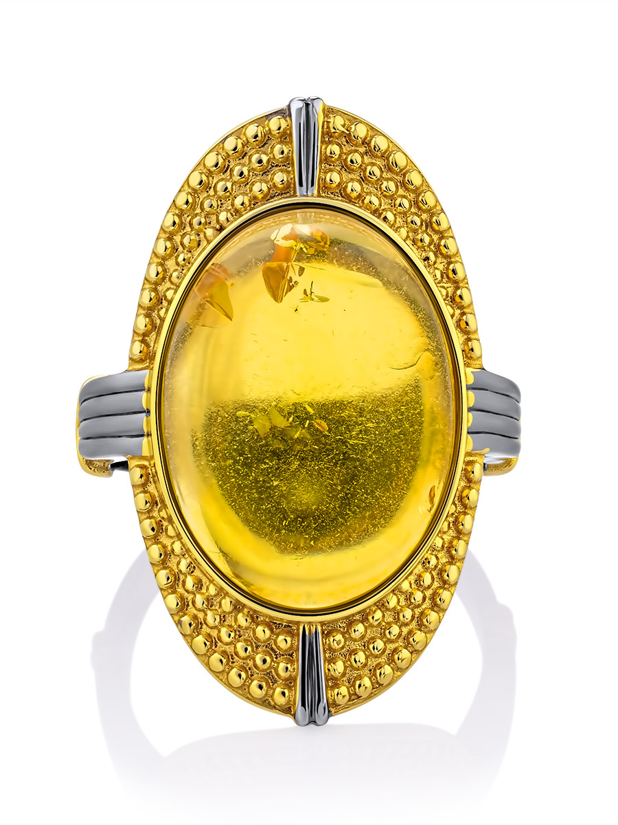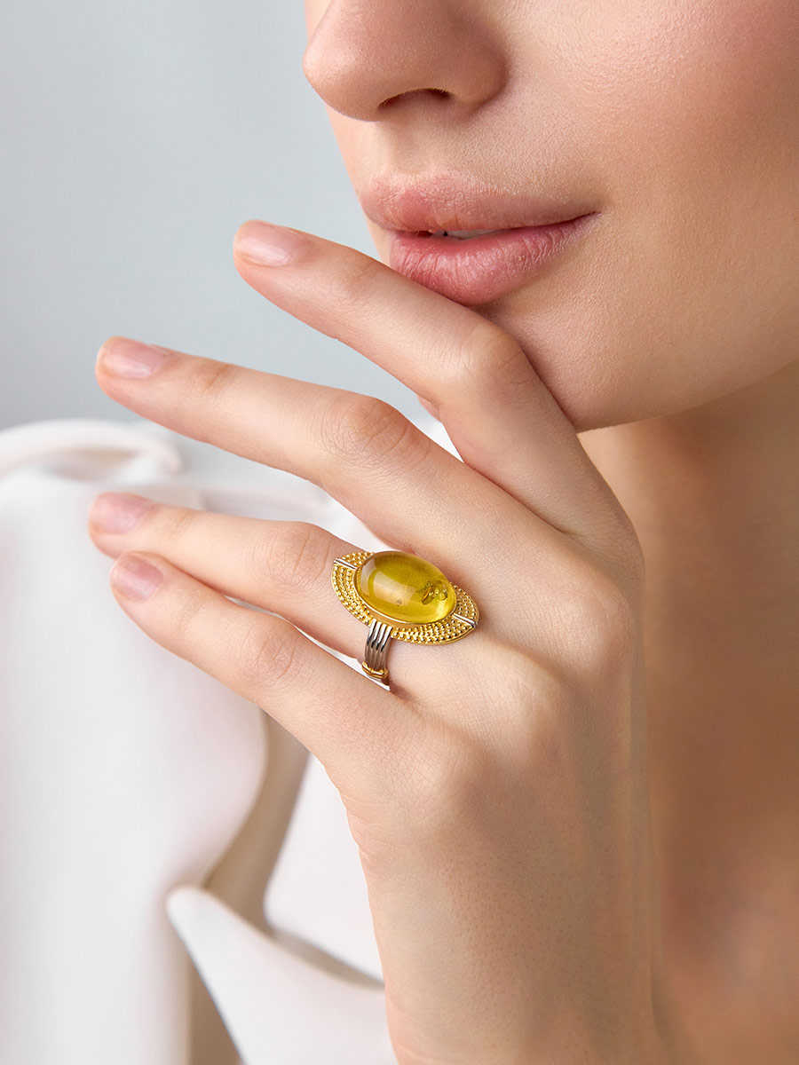 Кольцо с сияющим лимонным янтарём «Мойра»