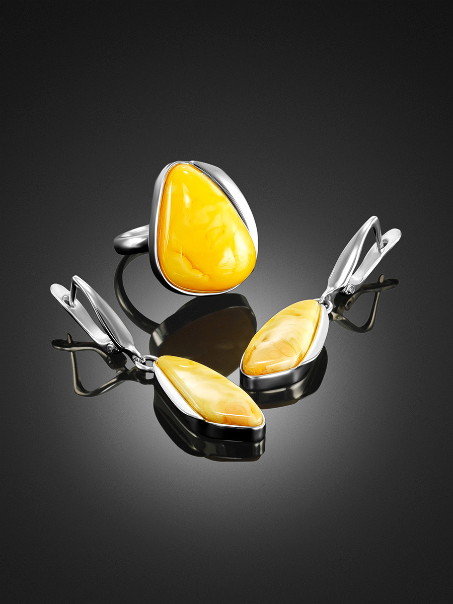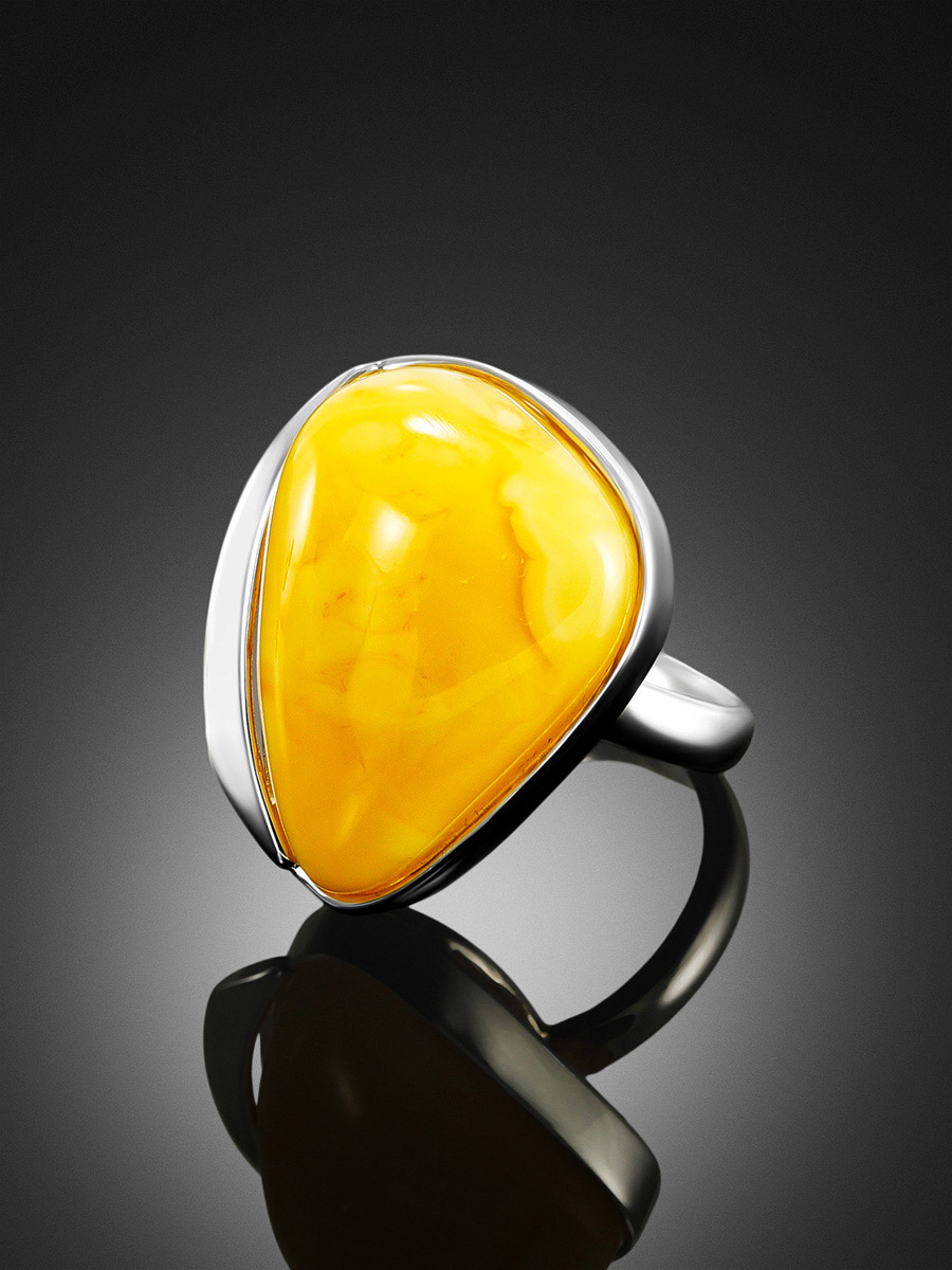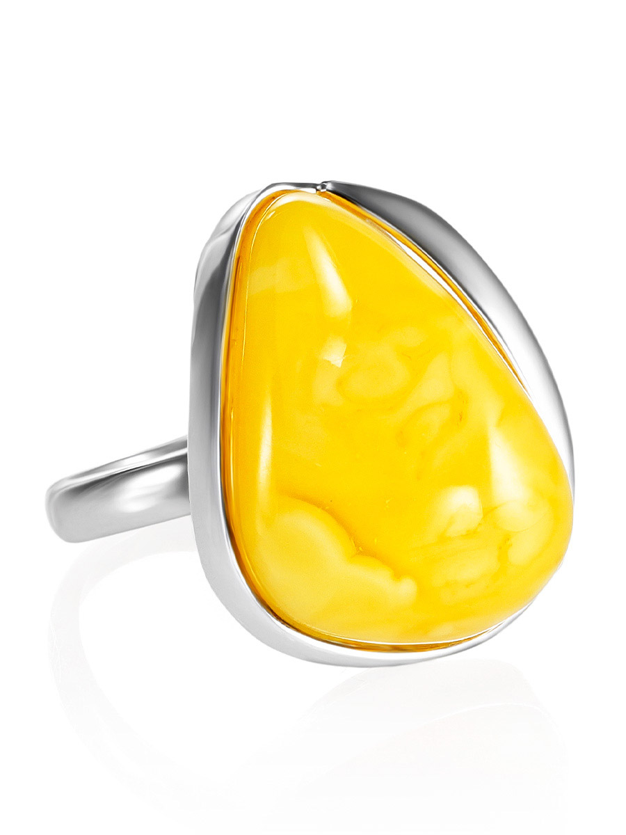 Кольцо с вставкой из живописного молочно-медового янтаря «Лагуна»