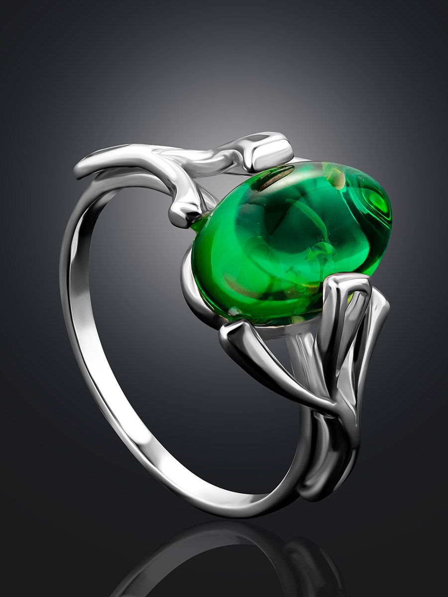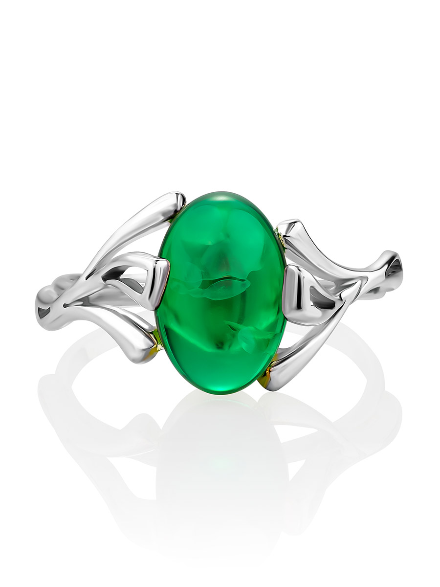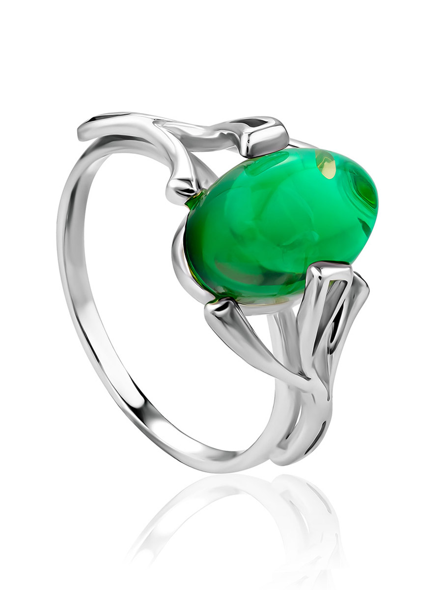 Кольцо с янтарём необычного изумрудного оттенка «Крокус»