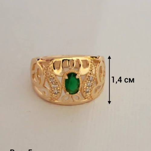 Кольцо широкое 18 р ювелирная бижутерия Дубайское золото покрытие позолота, вставка: фианиты, цвет: зеленый, арт.314.628-18