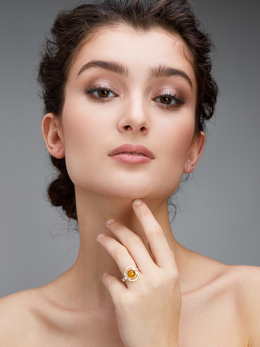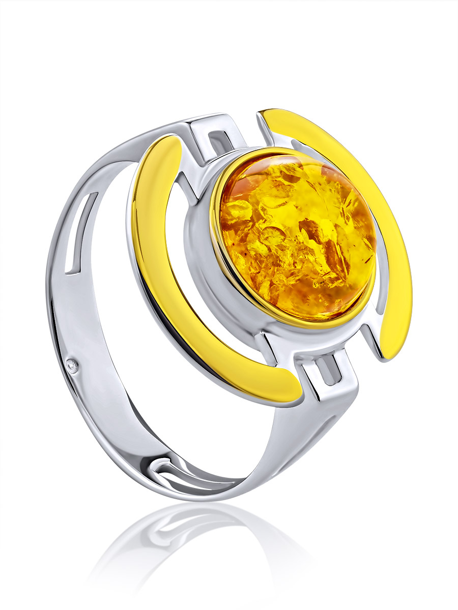 Кольцо в геометрическом дизайне «Люмьер» из золоттистого янтаря