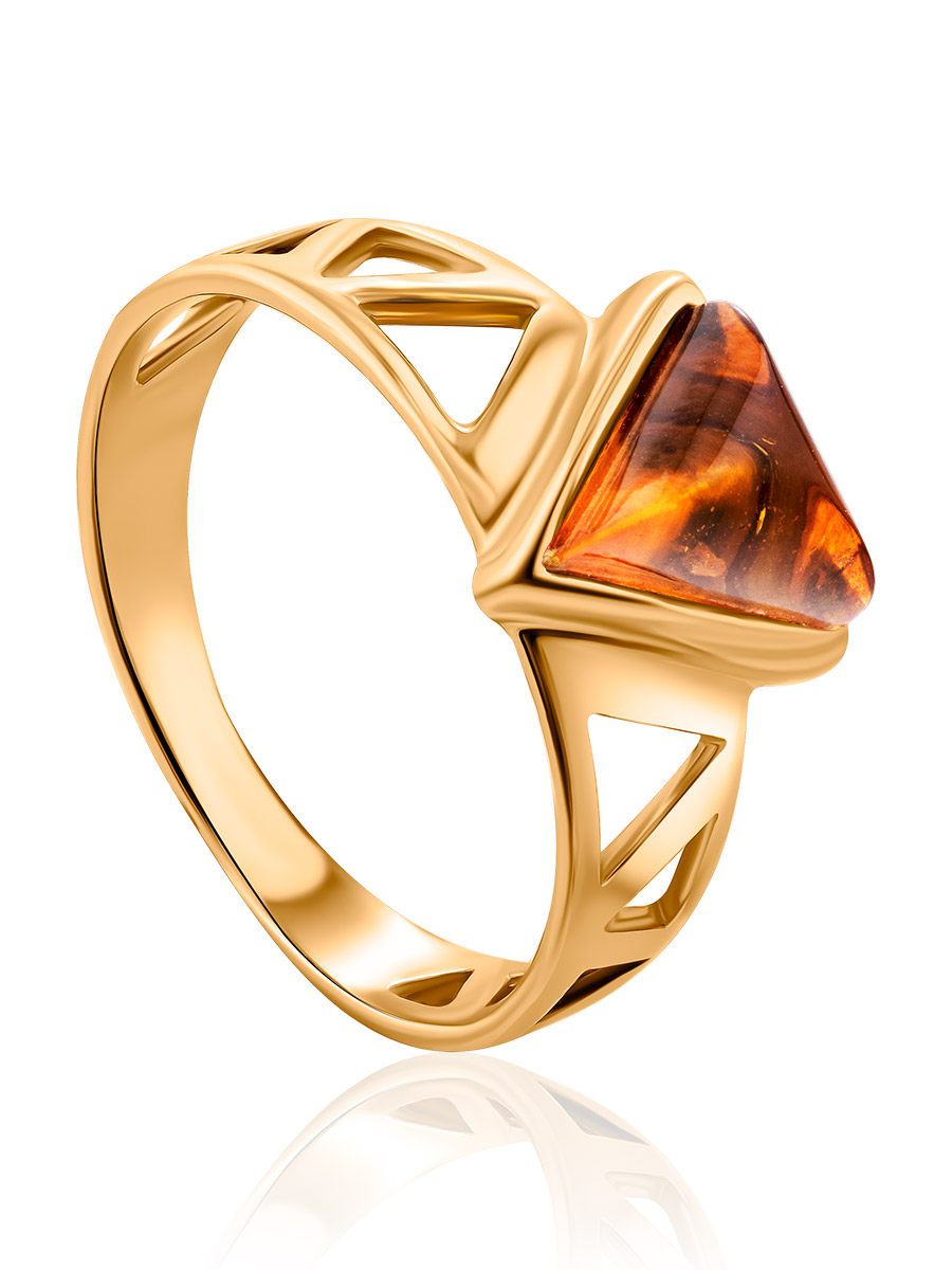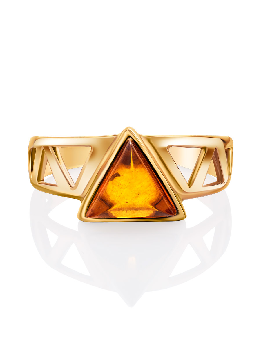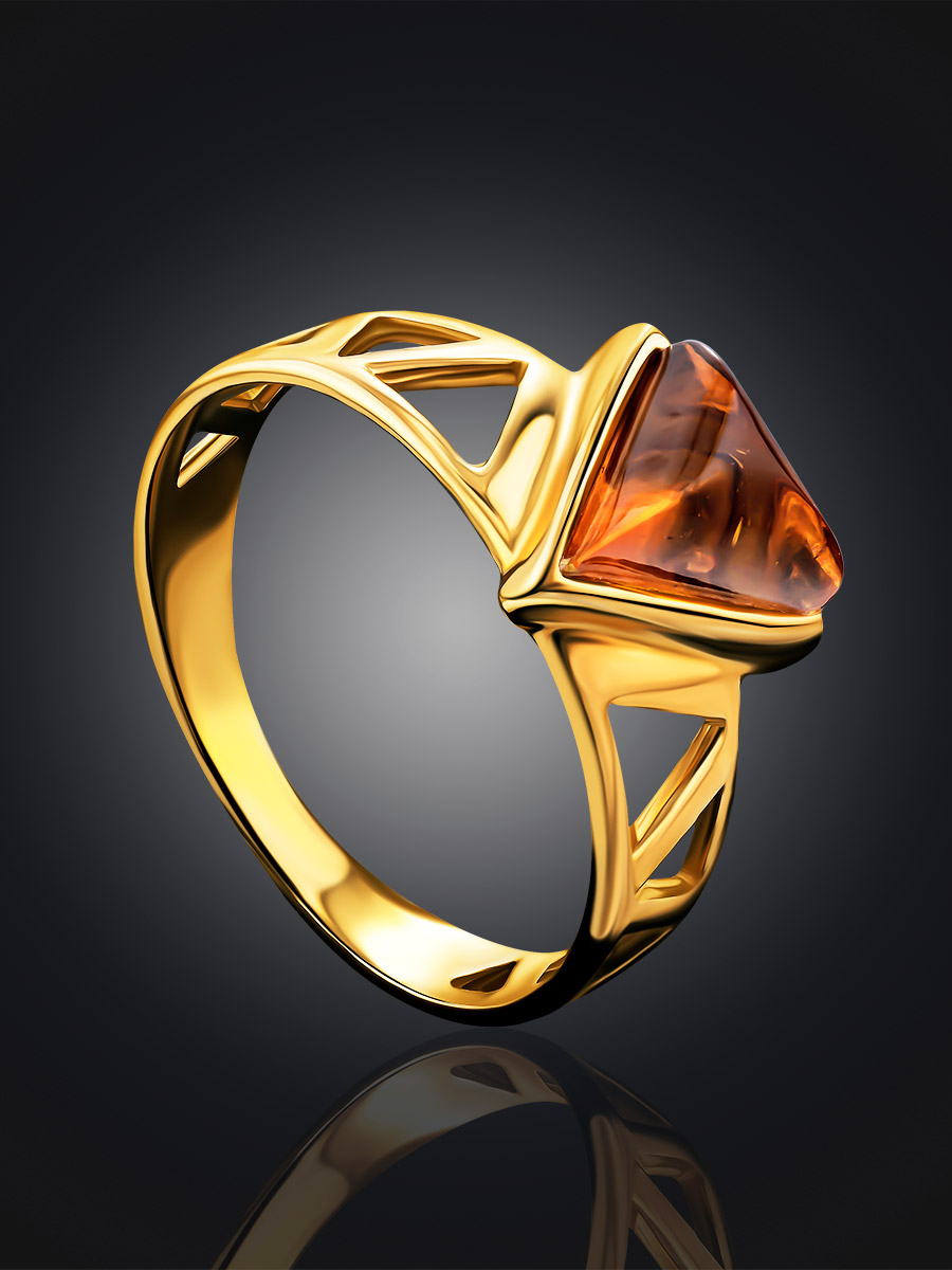 Кольцо в геометрическом дизайне «Триада» из коньячного янтаря