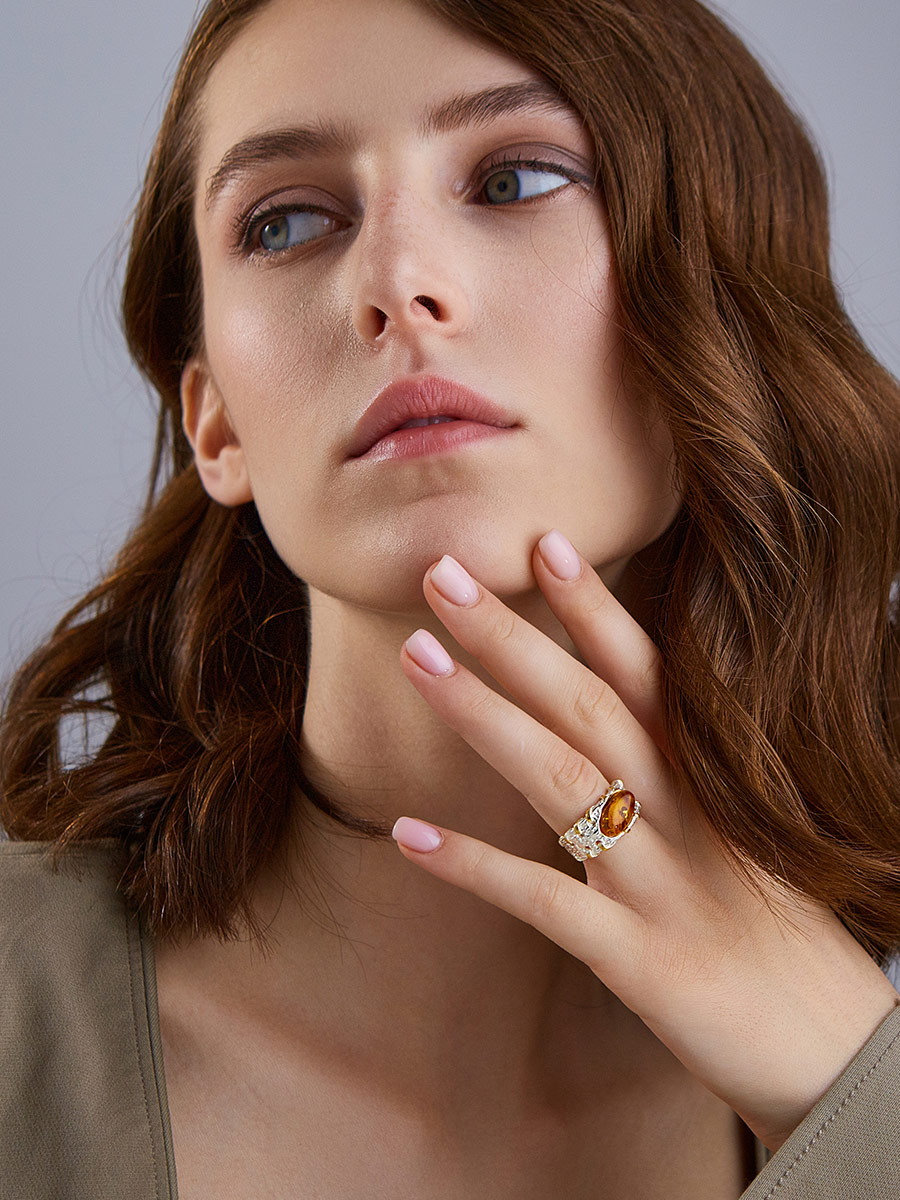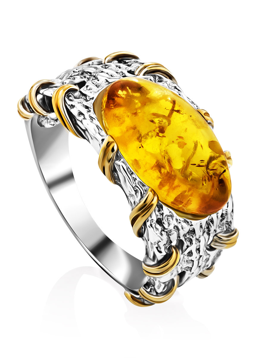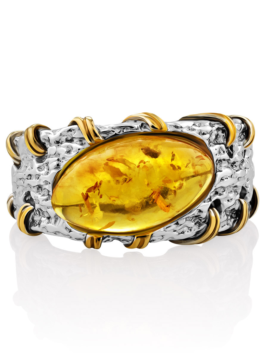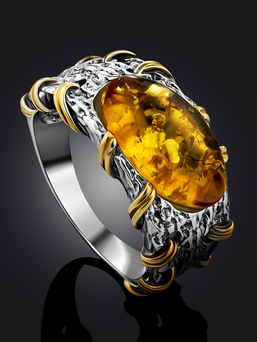 Кольцо в необычном дизайне из натурального янтаря «Гвинея»