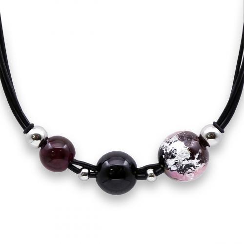 Колье изготовлено из натуральной кожи, муранского стекла и гипоаллергенной ювелирной стали, что очень важно для людей с чувствительной кожей. Металл не темнеет и не подвергается воздействиям окружающей среды, надолго обеспечивая красивый внешний вид изделия. Длина колье - 46 см + 5 см. удлиняющая цепочка. Размер стеклянного элемента - 2,2х2,2 см. Вес - 20 гр.