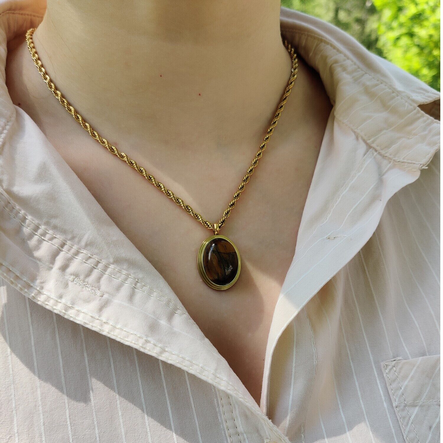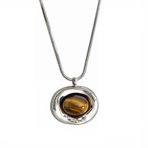 Стильное колье с камнем ТИГРОВЫЙ ГЛАЗ