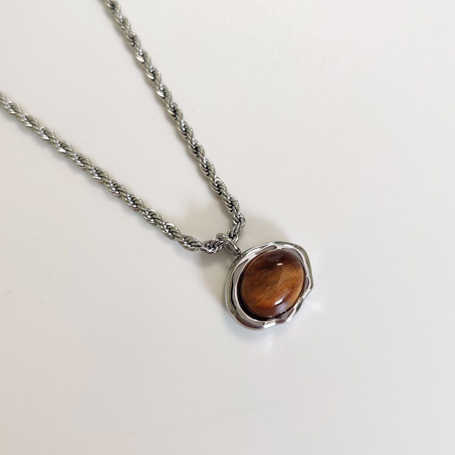Стильное колье с камнем ТИГРОВЫЙ ГЛАЗ