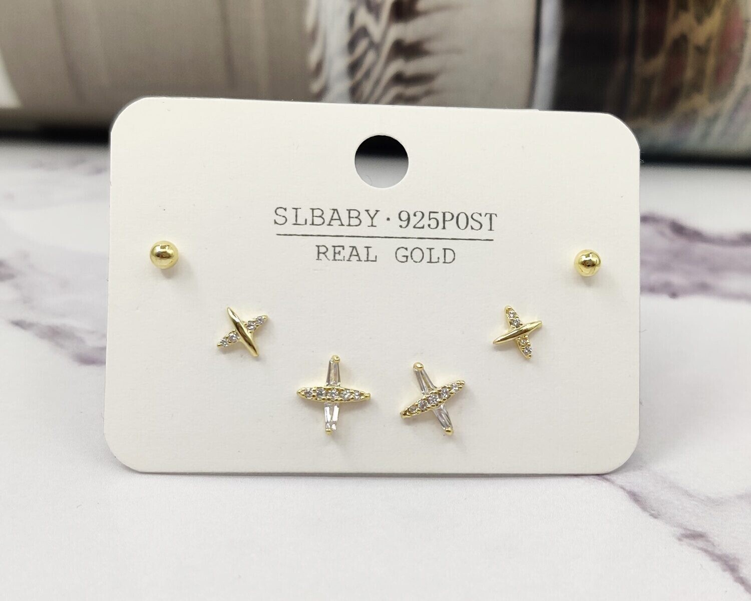 В комплект входят 6 гвоздиков которые можно одевать ассиметрично,на одно ухо, или сочетать между собой в зависимости от Вашего образа.