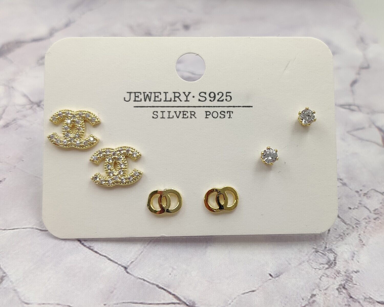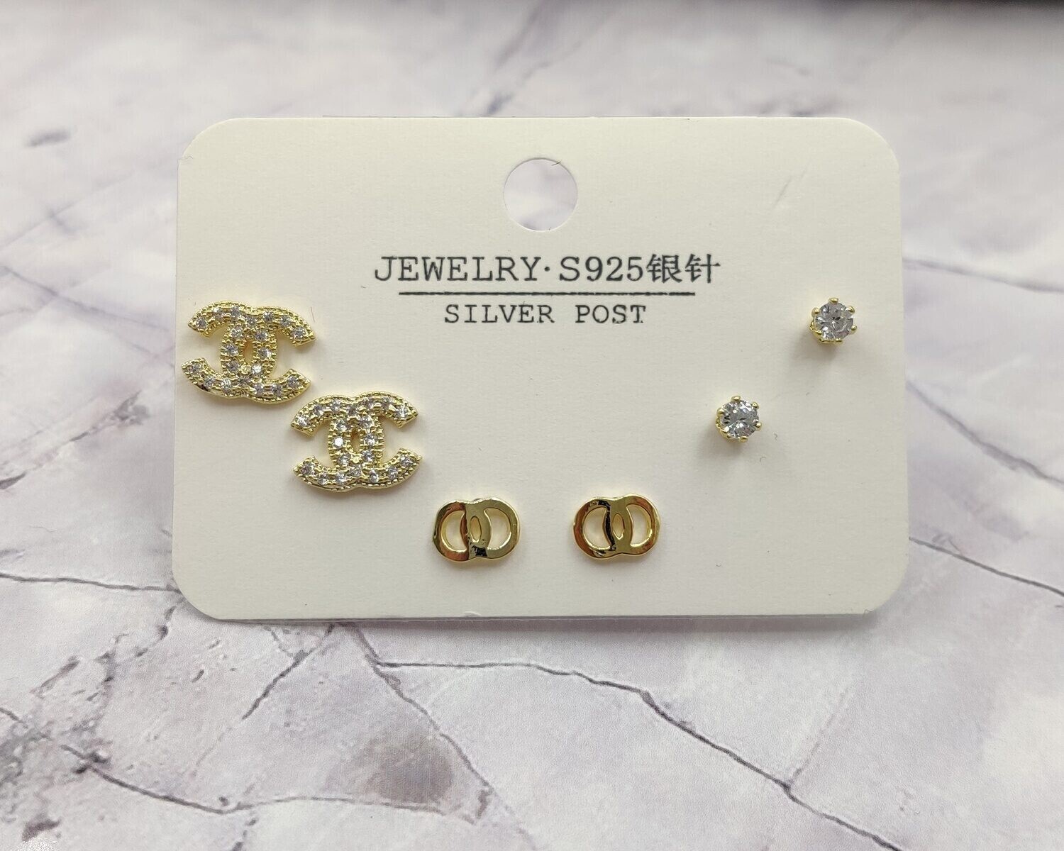 В комплект входят 6 гвоздиков которые можно одевать ассиметрично,на одно ухо, или сочетать между собой в зависимости от Вашего образа.