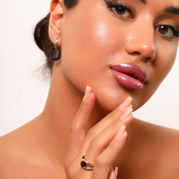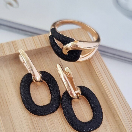 Комплект украшений ювелирная бижутерия Дубайское золото серьги и кольцо, покрытие позолота, вставка: блестки, цвет: черный, р р 18, арт.215.059-18