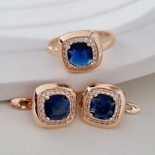 Комплект ювелирная бижутерия коллекция "Дубай" серьги и кольцо 17 р, покрытие: позолота, вставка: фианиты, цвет: прозрачный и синий, арт.213.757-17