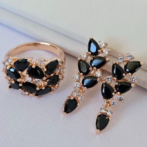 Комплект ювелирная бижутерия коллекция "Дубай" серьги и кольцо 18 р, покрытие: позолота, вставка: фианит, цвет: прозрачный, Уценка, арт.08.3662-18 (217.323-18)