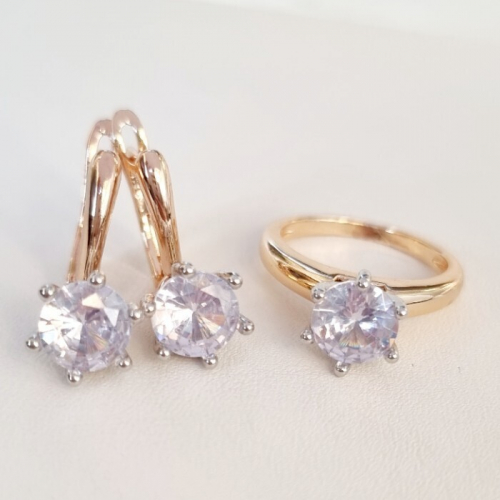 Комплект ювелирная бижутерия коллекция "Дубай" серьги и кольцо 19 р, покрытие: позолота, вставка: фианиты, цвет: прозрачный, Уценка, арт.08.3663-19 (217.328-19 )