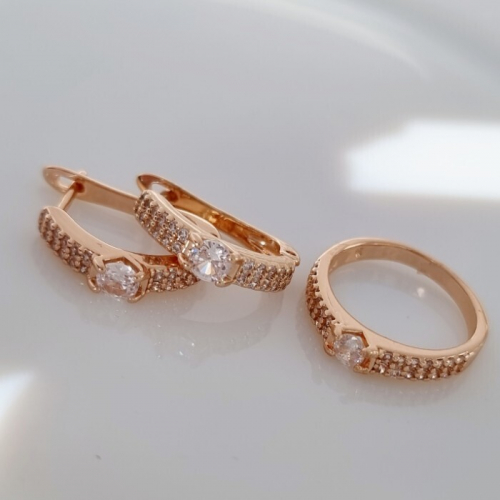 Комплект ювелирная бижутерия коллекция "Дубай" серьги, кулон и кольцо 17 р, покрытие: позолота и вставка посеребрение, арт.213.818-17