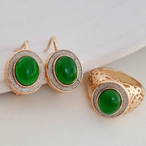 Комплект ювелирная бижутерия с крупным камнем коллекция "Дубай" серьги и кольцо 18 р, покрытие: позолота, вставка: искусственный камень, блестящий глиттер, цвет: прозрачный и зеленый, арт.213.779-18