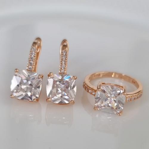 Комплект ювелирная бижутерия с квадратным камнем коллекция "Дубай" серьги и кольцо 20 р, покрытие: позолота, вставка: фианиты, цвет: прозрачный, арт.213.785-20