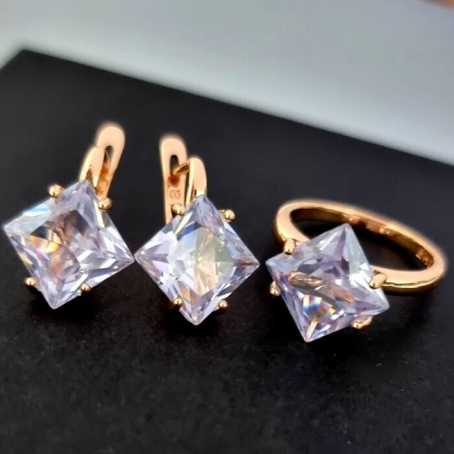 Комплект ювелирная бижутерия, серьги и кольцо позолота, р-р 20, цвет камня прозрачный, 54187,арт.214.986-20