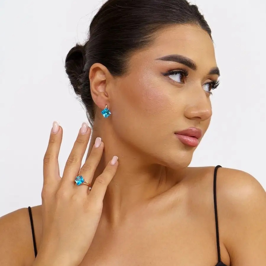 Описание Размер серьги: 1,8*1,3 см. Размер кольцо: размер квадрата 1,3*1.3 см. Замок: английский.