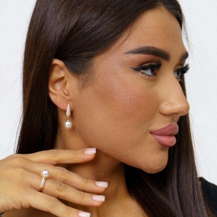 Комплект ювелирной бижутерии коллекция "Дубай" серьги и кольцо, покрытие: позолота, вставка: иск.жемчуг, р-р 17, 32222, арт.214.988-17