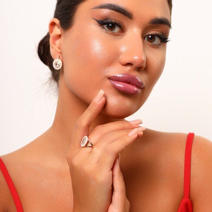 Комплект ювелирной бижутерии Дубайское золото с покрытием позолотой 18К, вставка: керамика натуральная и фианиты, цвет: белый, р-р 18, арт. 215.053-18