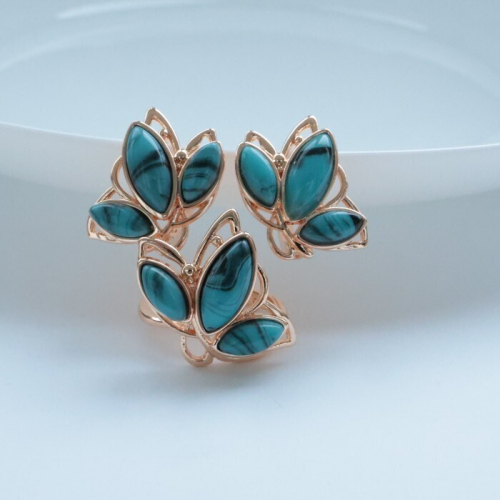 Комплект ювелирной бижутерии коллекция "Дубай" серьги и кольцо 19 р, покрытие позолота, вставка: бирюза искусственная, арт.214.995-19