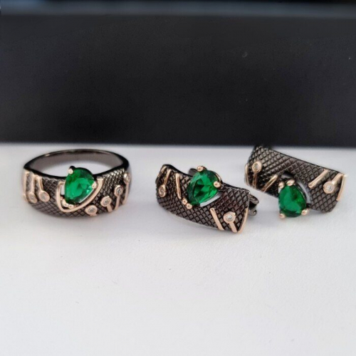 Комплект ювелирной бижутерии коллекция "Дубай",серьги и кольцо, вставка: блестящие прозрачные фианиты и камень зеленого цвета, р-р 20, Уценка, арт.08.3426 (215.224-20)