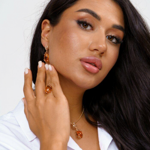 Комплект ювелирной бижутерии коллекция "Дубай" серьги, кулон и кольцо 17 р, покрытие позолота, вставка: фианиты, цвет: черный, Уценка, арт.08.3685-17 (314.909-17)