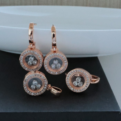 Комплект ювелирной бижутерии коллекция "Дубай" серьги, кулон и кольцо 18 р, покрытие позолота, вставка: фианиты, Уценка, арт.213.733-18