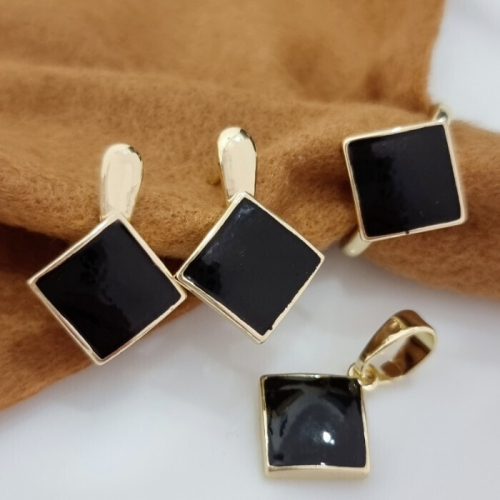 Комплект ювелирной бижутерии коллекция "Дубай" серьги, кулон и кольцо 18 р, покрытие позолота, вставка: искусственный кристалл под Сваровски, цвет: черный, Уценка, арт.08.3473 -18 (314.817-18)