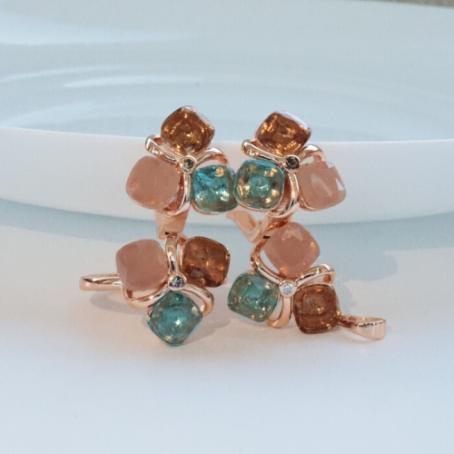 Комплект ювелирной бижутерии коллекция "Дубай" серьги, кулон и кольцо 19 р, покрытие позолота, вставка: искусственные цветные камни, цвет: оранжевый, голубой, бежевый матовый, арт.213.715-19