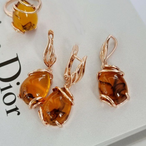 Описание Размер кольца: 17. Размер серёжек: 3,7*1,3 см. Размер кулона: 3,5*1,3 см. Замок: английский. Материал: бижутерный сплав, иск.янтарь. Вес: 13 гр.(цепочка в комплект не входит)