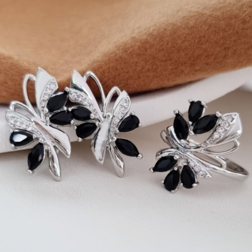 Описание Уценка! Небольшие пятна на кольце и серьге.Размер серьги: 2,6*1 см. Замок: английский. Вес комплекта: 9 гр.