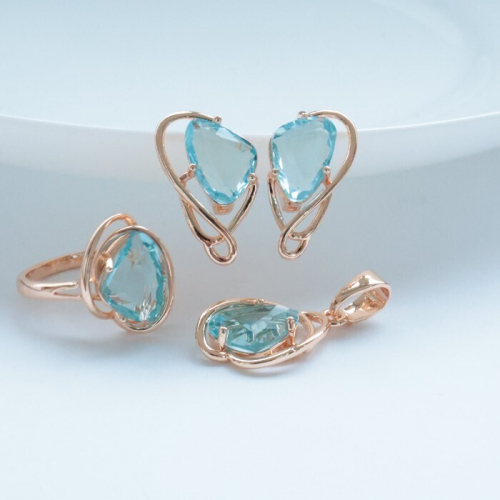 Комплект ювелирной бижутерии коллекция "Дубай" в форме перешка серьги и кольцо 17 р, покрытие позолота, вставка: фианиты, цвет: зеленый и синий, арт.214.999-17