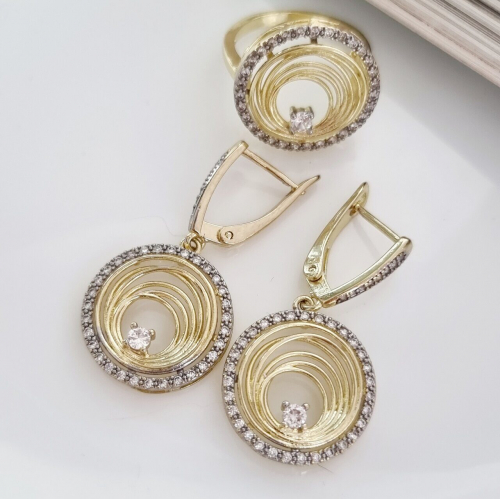 Описание Уценка! Серьги и кольцо. Нет кулона. Размер серьги: 4*1,7 см. Замок: английский.Вес комплекта: 27 гр. Внимание! Цепочка в комплект не входит.