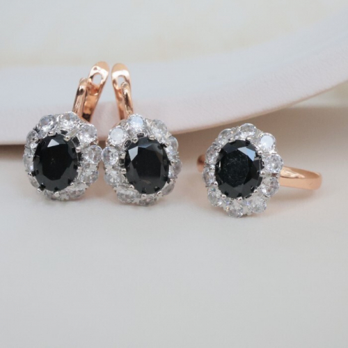 Комплект ювелирной бижутерии серьги и кольцо 19 р, покрытие посеребрение, вставка: фианиты, цвет: прозрачный, Уценка, арт.08.3464 (213.956-19 )