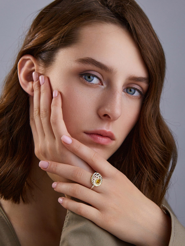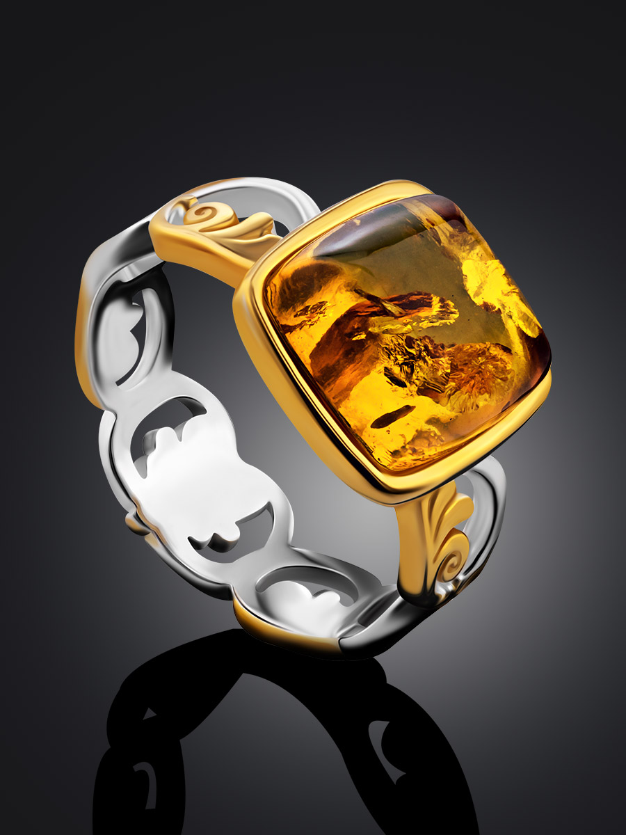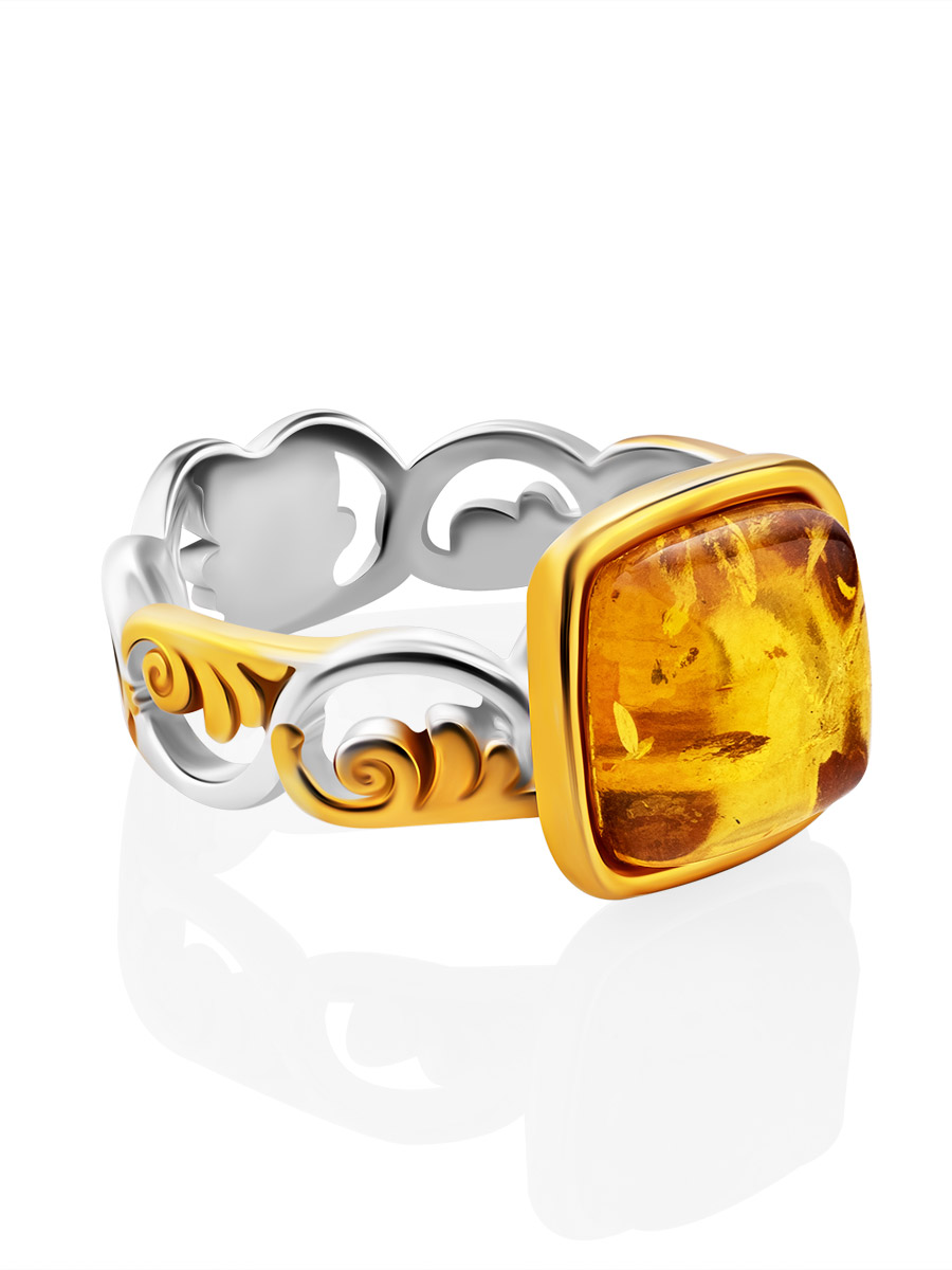 Красивое эффектное кольцо «Валетта» из натурального янтаря
