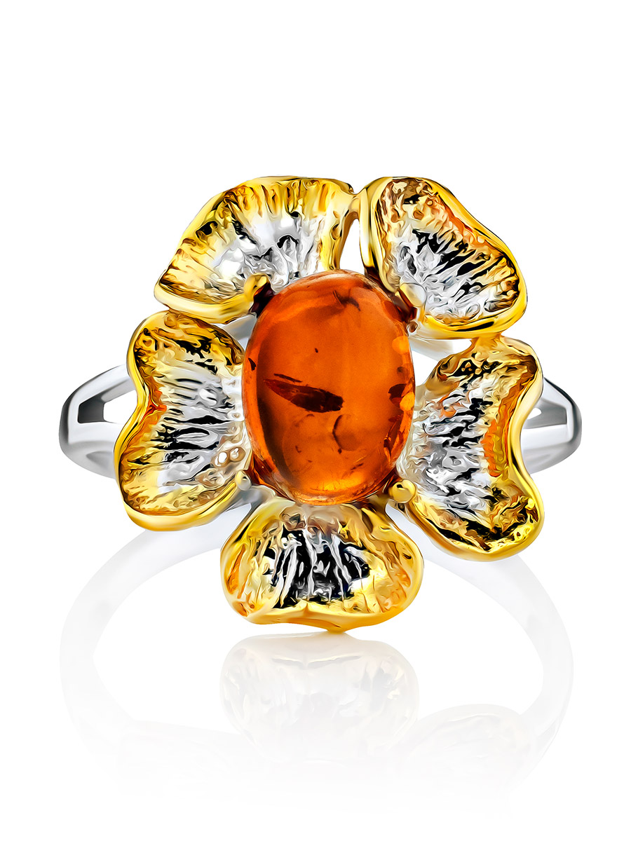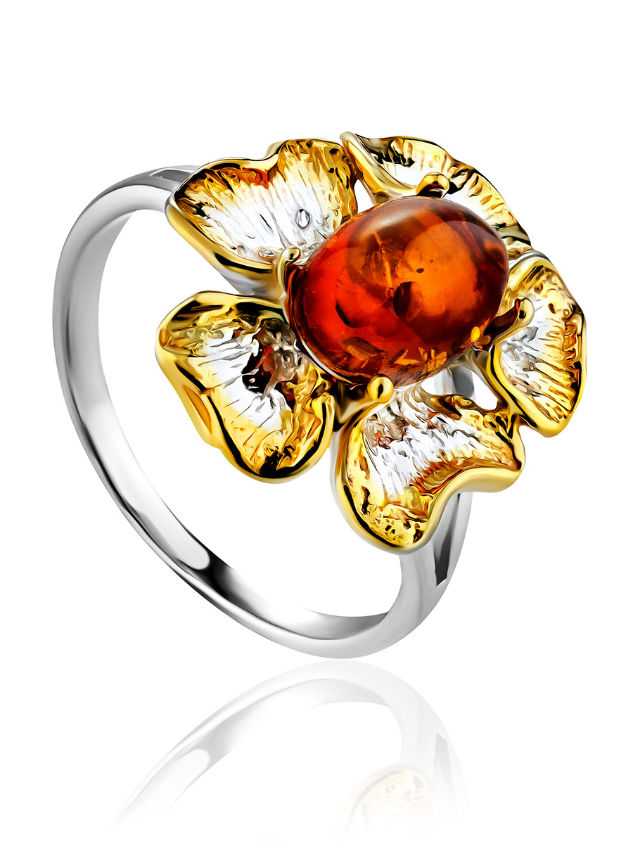 Красивое кольцо с янтарём коньячного цвета «Бальзамин»