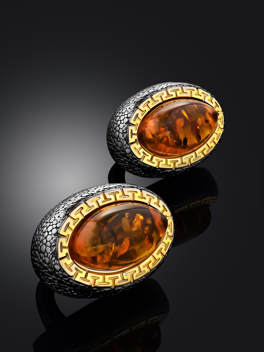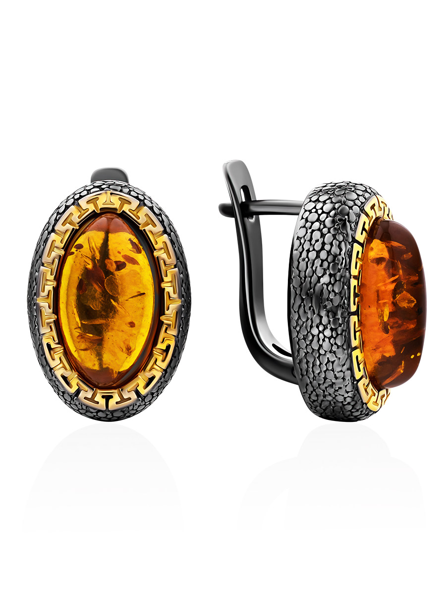 Красивые элегантные серьги из натурального янтаря «Змейка»