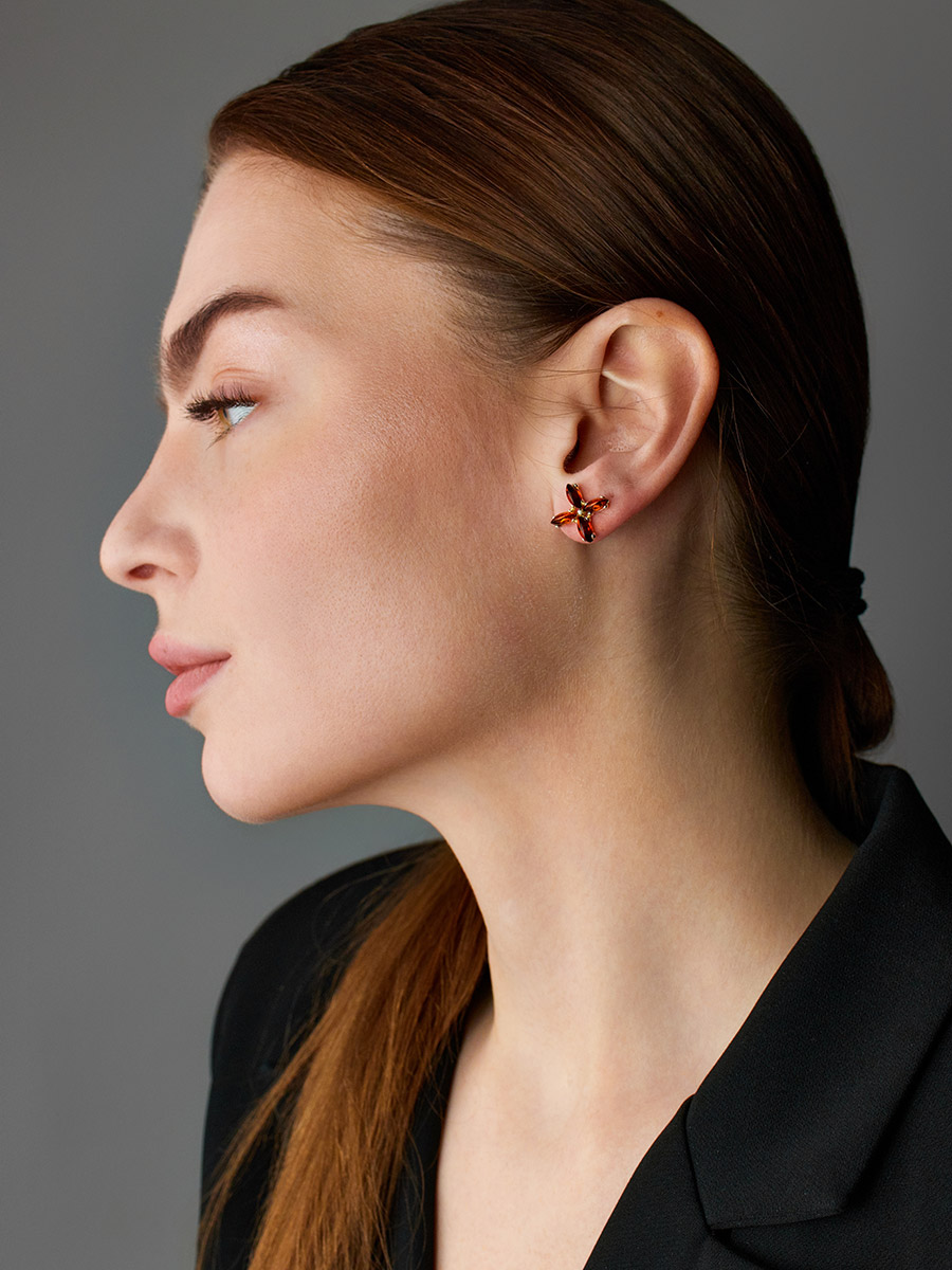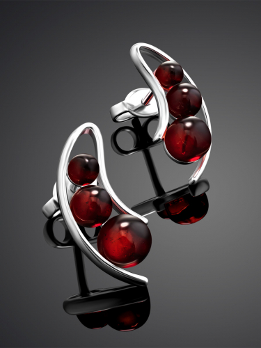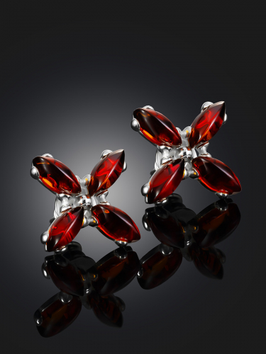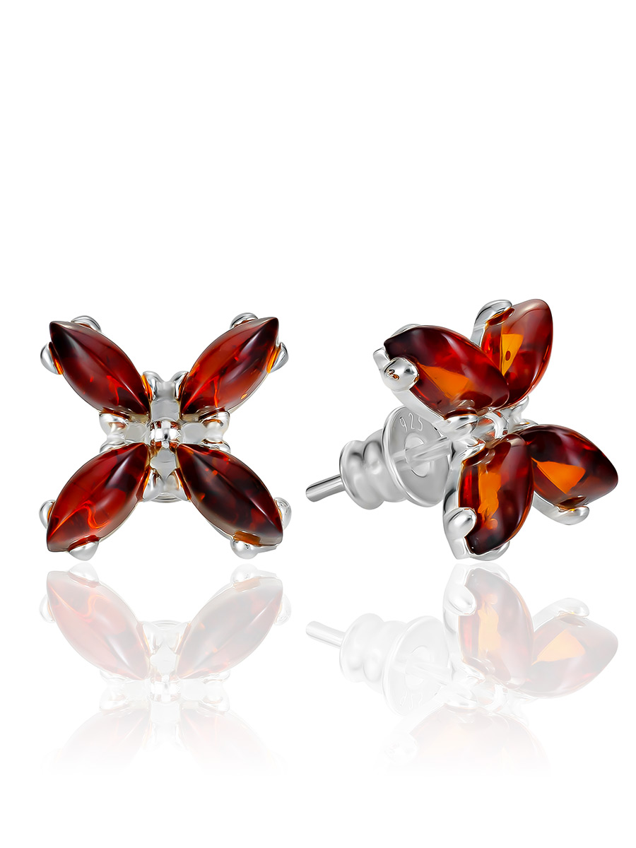 Красивые серьги-гвоздики из натурального балтийского янтаря коньячного цвета «Суприм»