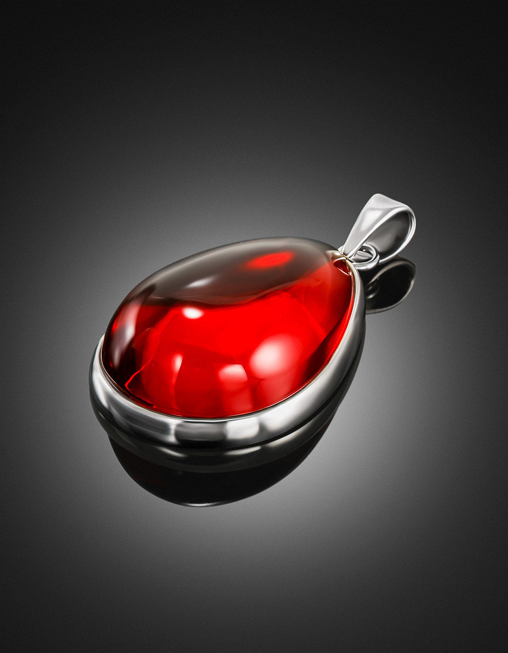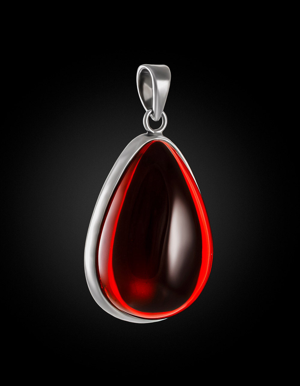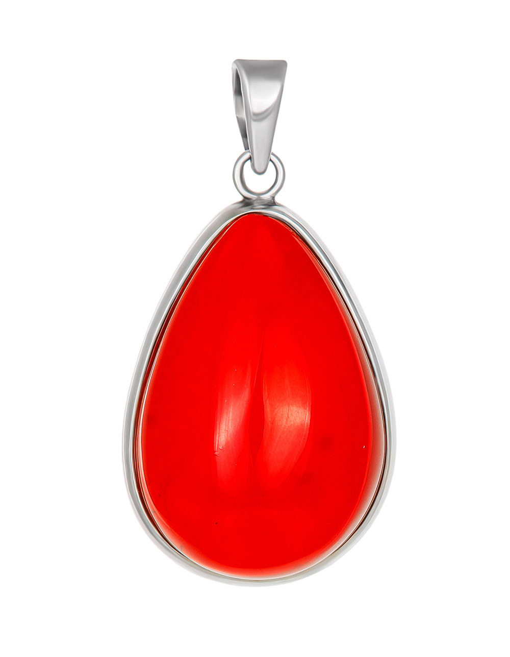 Красивый кулон-капля из янтаря насыщенного красного цвета