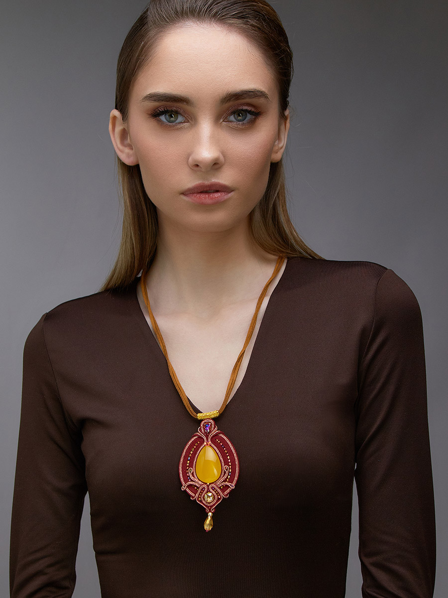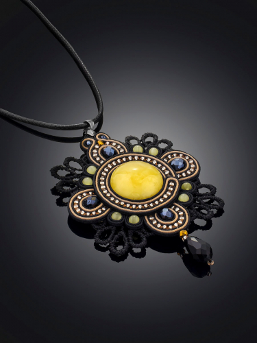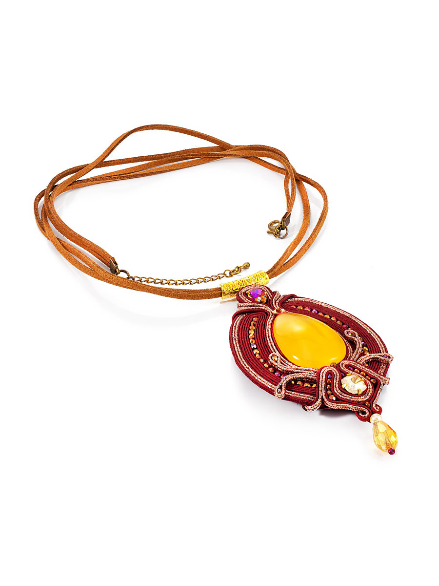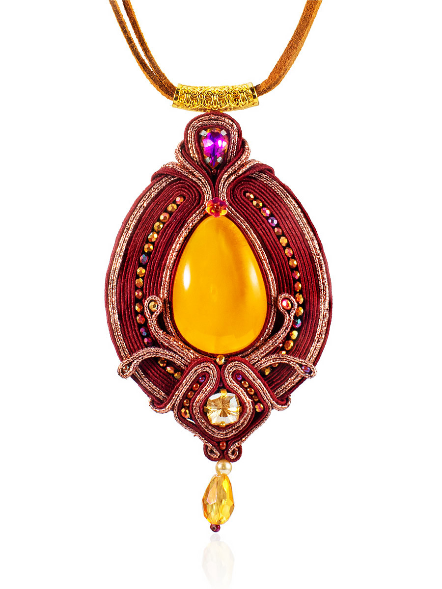 Размеры камня (мм): 33х18х7 Вес и..показатьзделия (г): 13.8 Размер / длина (см): 9.5 Цвет: медовый Материалы: Натуральный янтарь / Текстиль / Бисер / Кристаллы / Кожа Коллекция: Индиязделия (г): 13.8 Ошибка при загрузке данных! (https://amberholl.ru/opt/catalog/amber_pendants/natural_amber_pendant_k211216/)
