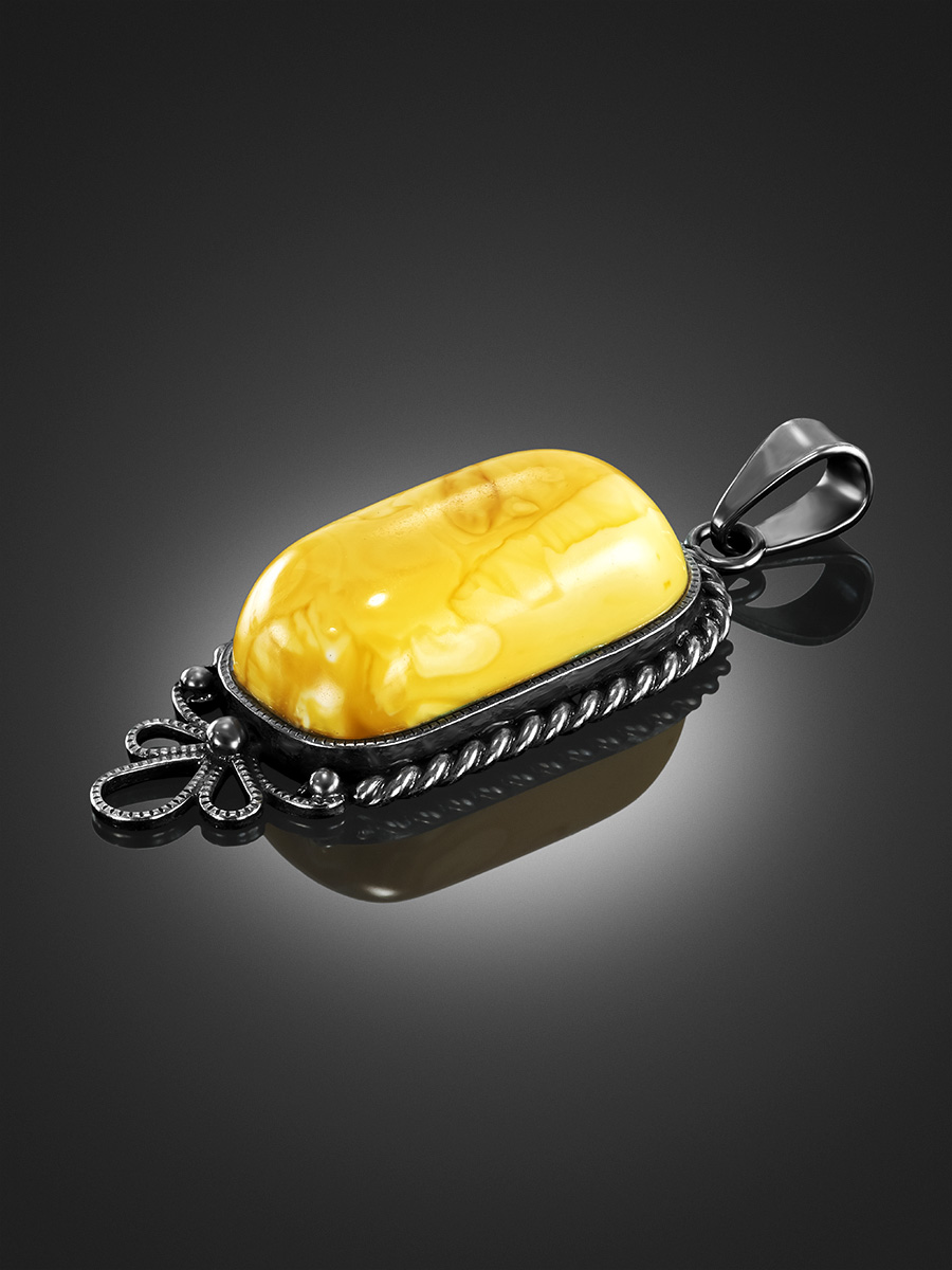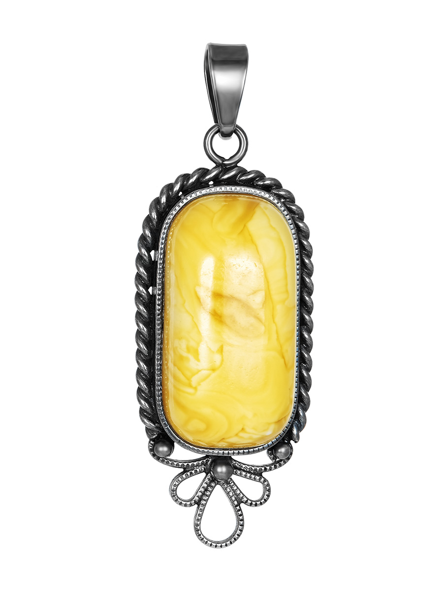 Роскошная тяжёлая подвеска сочетает в себе изысканную красоту и богатый красивый цвет вставки из натурального балтийского янтаря. Созданное в изящном винтажном дизайне это украшение добавит женственности любому вашему образу. _x000D_